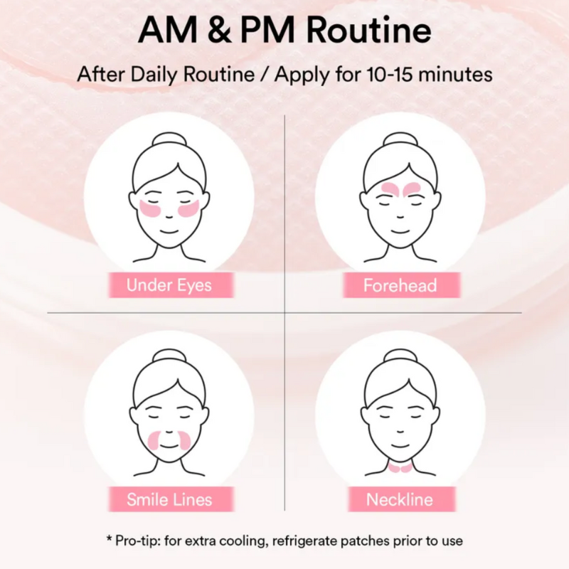 Place the eye patch under your eyes and leave it on for 10–15 minutes. Remove and gently pat in the remaining essence for a smooth, bright finish.